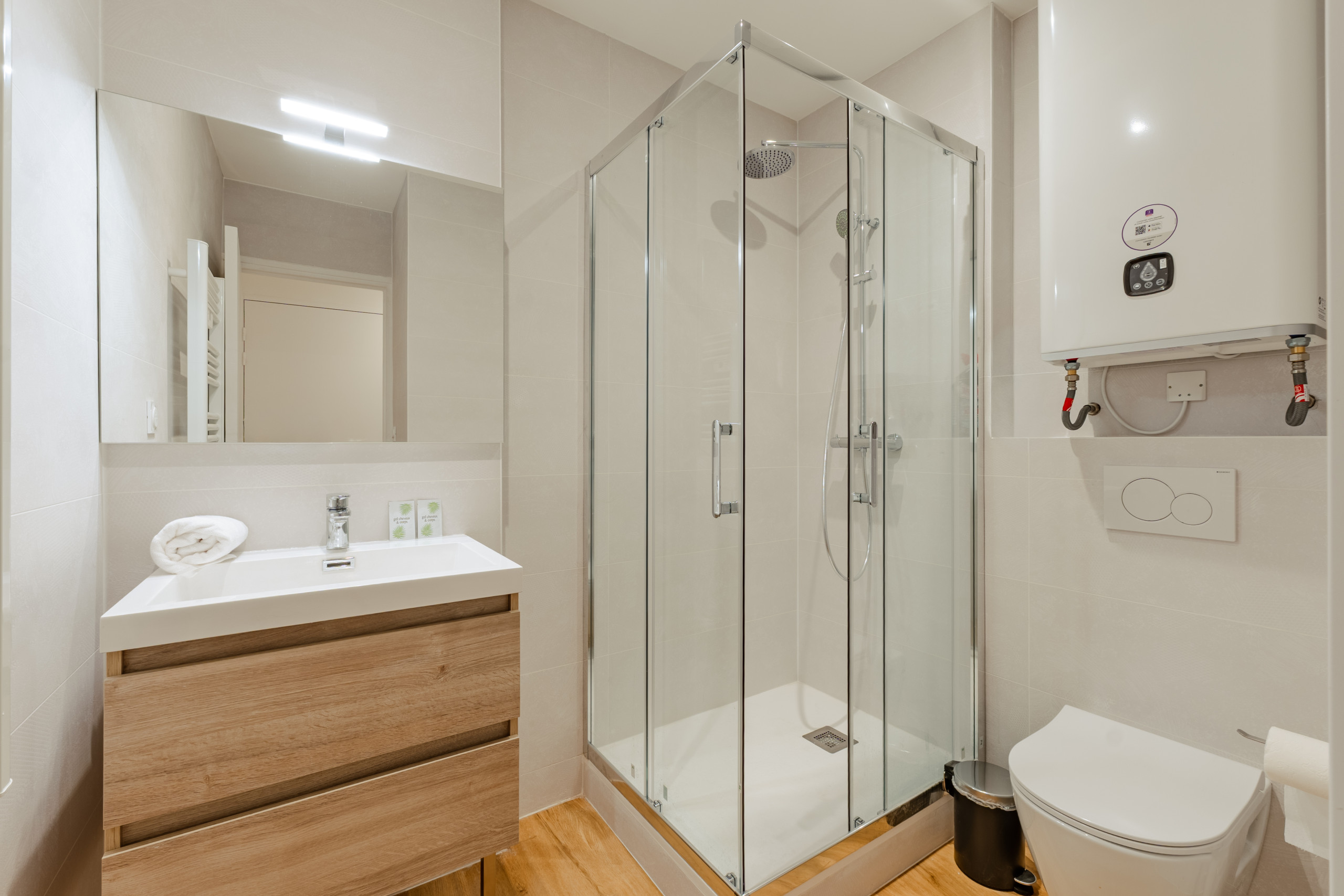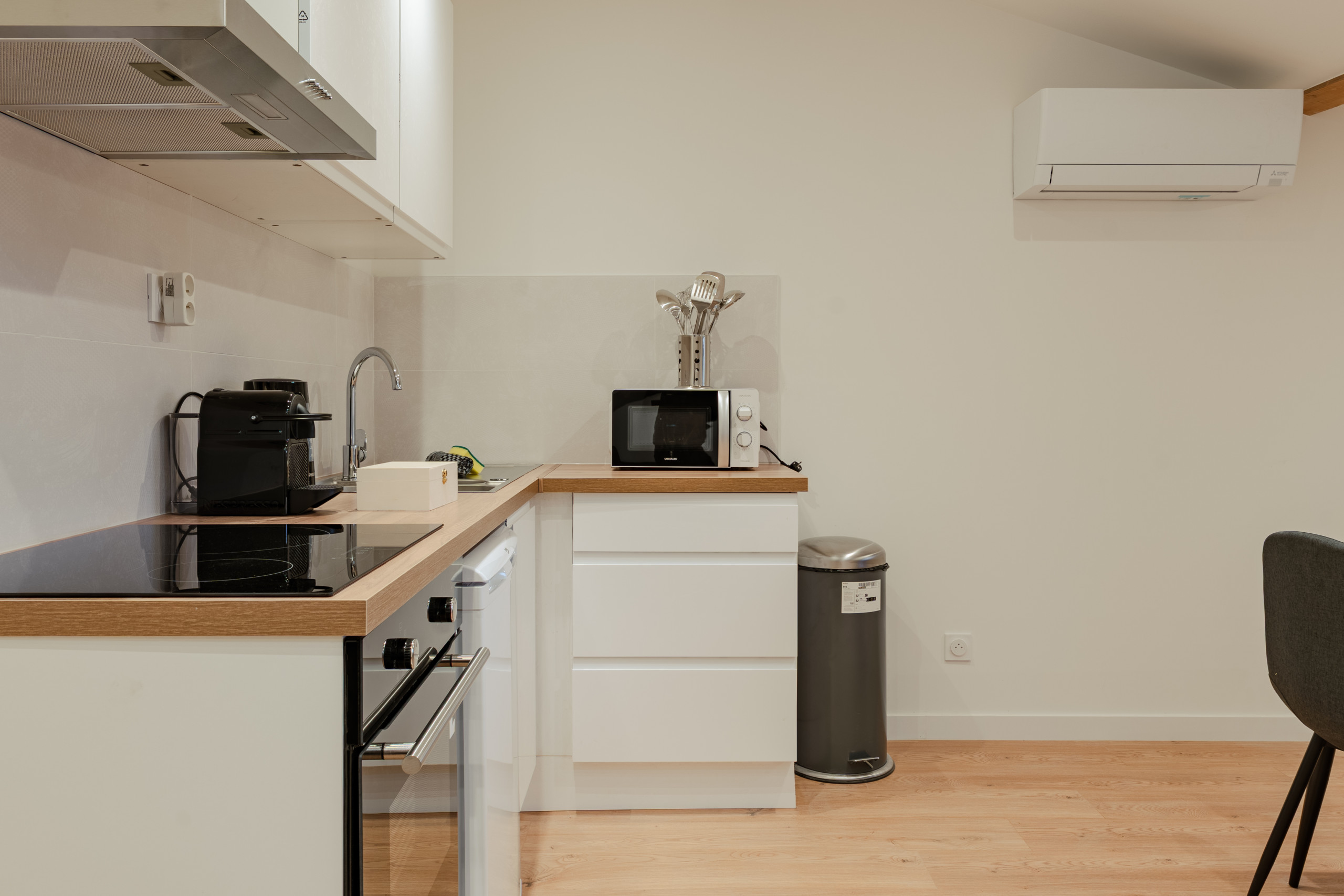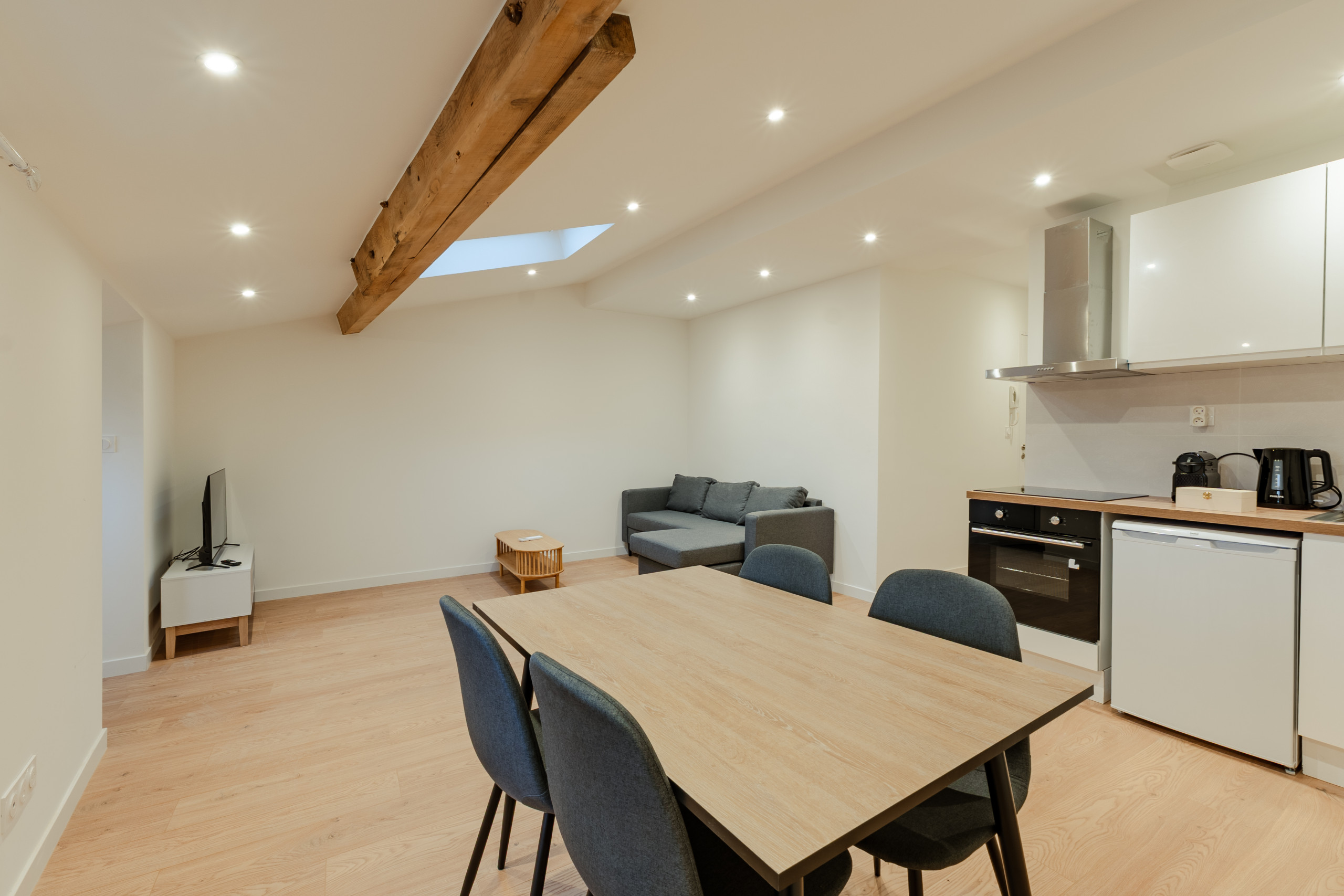 Appartement à Valence qui possède 1 chambre(s) et Capacité pour 2 personnes. Logement de 38 m². Elle dispose de accès internet (wifi), sèche-cheveux, chauffage pompe à chaleur, climatisation dans tout le logement, 1 Télévision. La cuisine américaine, à induction, est équipée avec réfrigérateur, micro-ondes, four, congélateur, vaisselle/couverts, ustensiles/cuisine, cafetière, grille pain et bouilloire.