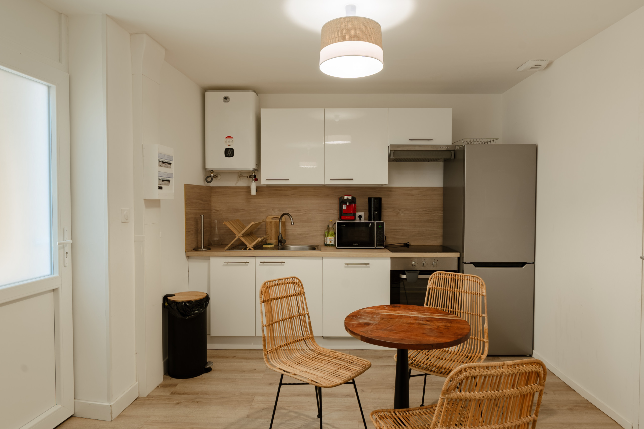 Appartement à Valence qui possède 1 chambre(s) et Capacité pour 2 personnes. Logement de 33 m². Elle dispose de mobilier de jardin, 10 m² de terrasse, accès internet (wifi), chauffage pompe à chaleur, climatisation, 1 Télévision.La cuisine américaine, à induction, est équipée avec réfrigérateur, micro-ondes, four, congélateur, lave-vaisselle, vaisselle/couverts, ustensiles/cuisine, cafetière, grille pain et bouilloire.