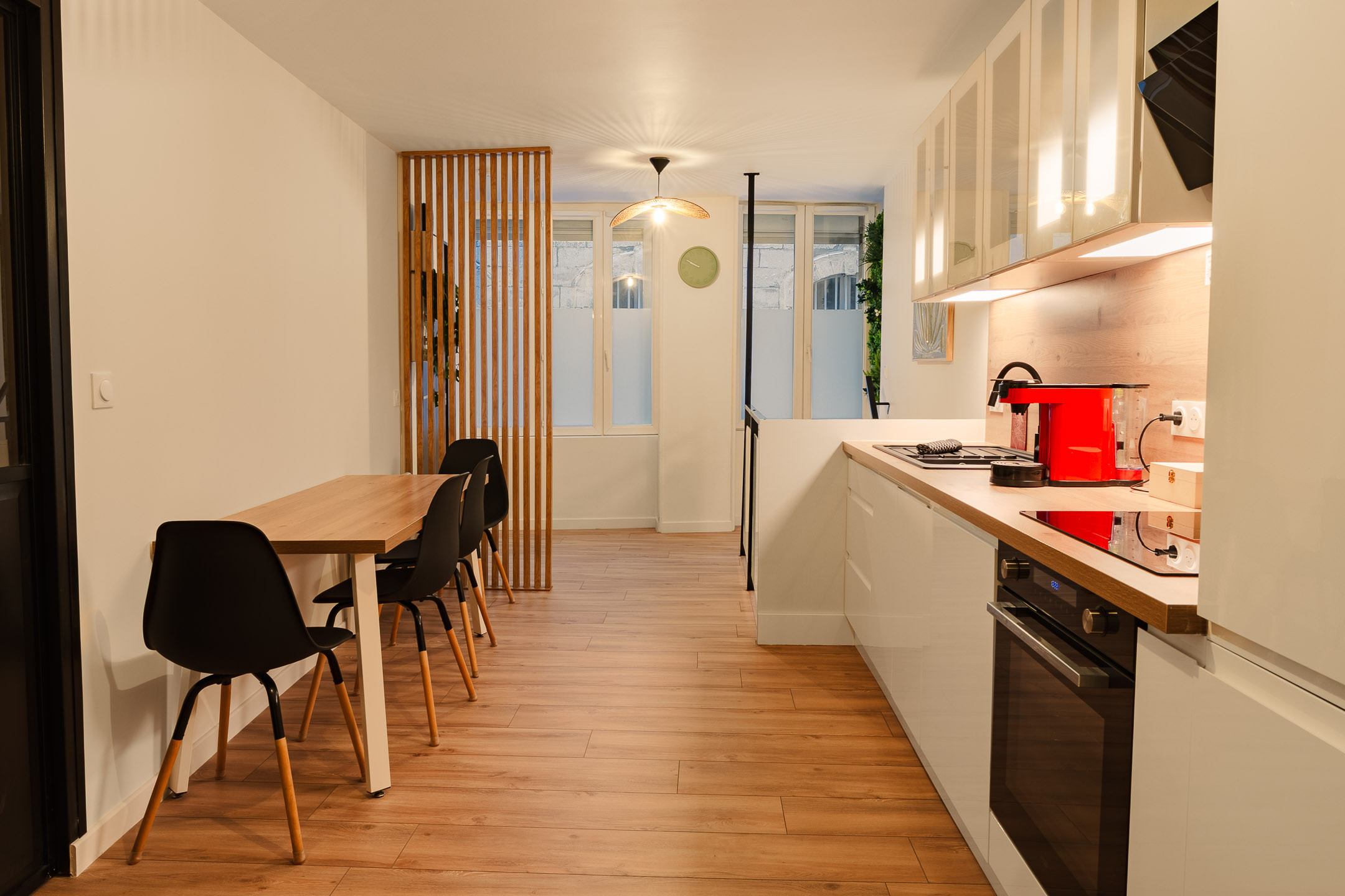 Appartement à Valence qui possède 1 chambre(s) et Capacité pour 2 personnes. Logement de 65 m². Elle dispose de jardin, mobilier de jardin, clôture, 7 m² de terrasse, lave-linge, sèche-linge, minibar, accès internet (wifi), sèche-cheveux, chauffage électrique, 1 Télévision. La cuisine américaine, à induction, est équipée avec réfrigérateur, micro-ondes, four, congélateur, lave-vaisselle, vaisselle/couverts, ustensiles/cuisine, cafetière, grille pain et bouilloire.
